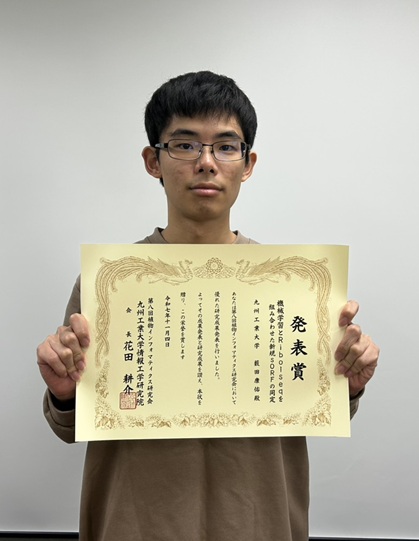 本学学生が第8回植物インフォマティクス研究会年会で発表賞を受賞しました。 掲載日:2025年11月13日 令和7年11月4日(火)に開催された第8回植物インフォマティクス研究会年会において、学部4年生の薮田康佑さん(花田研究室)が「機械学習とRibo-seqを組み合わせた新規sORFの同定」という題目で発表し、発表賞を受賞しました。